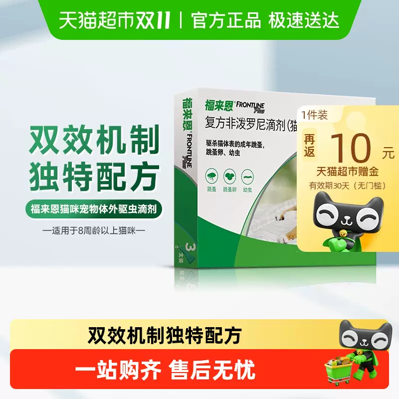 CatFans 9折消费券 https://s.click.taobao.com/0y7v8wp 猫超 福来恩猫用体外驱虫滴剂3支 商品右上角[•••]进"淘金币 💰89,88vip💰84.6 叠2亓金币+消费券💰74.3 返10猫超卡到手💰64.3 https://s.catfans.club/5rk
