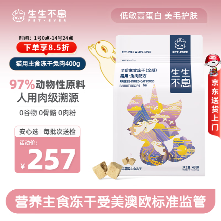 CatFans 生生不息兔肉配方冻干400g 实付💰156,返卡💰25,到手plus💰131 领https://s.catfans.club/6t1 跳转APP膨胀plus300-30 https://s.catfans.club/6t2 砸蛋/加车/领券中心 得11-10 拍https://s.catfans.club/6t3 凑https://s.catfans.club/6t4 牛肉自行切换选项