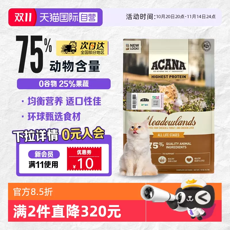 CatFans 9折消费券 https://s.click.taobao.com/aieedjp 爱肯拿牧场盛宴猫粮4.5kg ①右上角[•••]-点"淘金币 ②标题旁边领取500-25券,或到app首页-天猫国际-中间领取 💰248,88vip💰234 叠30亓金币💰207 https://s.catfans.club/760