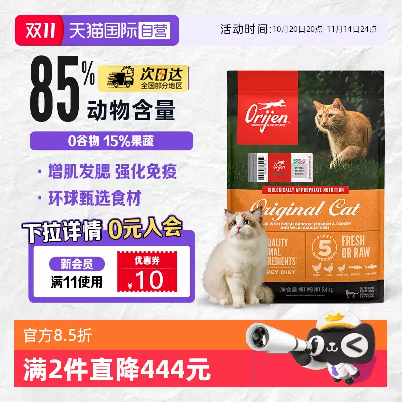 CatFans 9折消费券 https://s.click.taobao.com/aieedjp 效期至26.5 渴望原味无谷鸡猫粮5.4kg ①右上角[•••]-点"淘金币 ②标题旁边领1000-50券(或到app首页-天猫国际-中间领取) 💰403,88vip💰380 叠55亓金币+凑单💰313 https://s.catfans.club/761 凑单 https://s.catfans.club/762